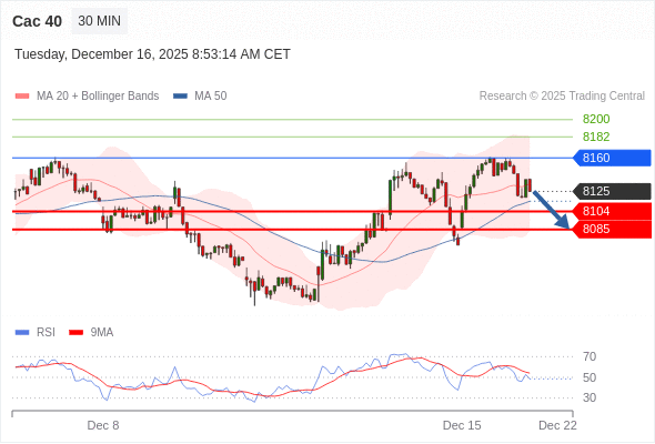 Cac 40 当日内: 短期关键阻力位在8160。