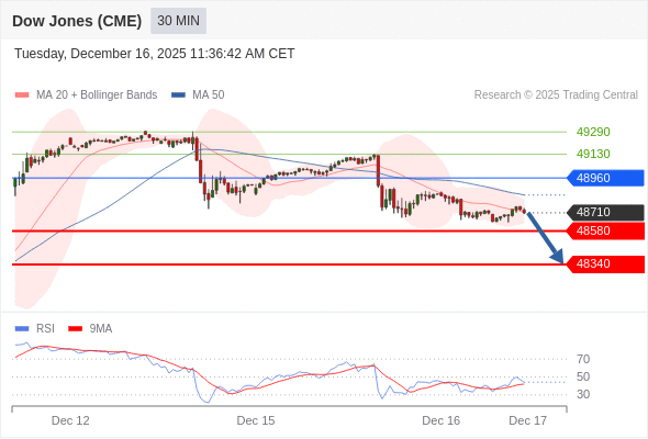 在 48960 之下,看跌,目标价位为 48580 ,然后为 48340 。