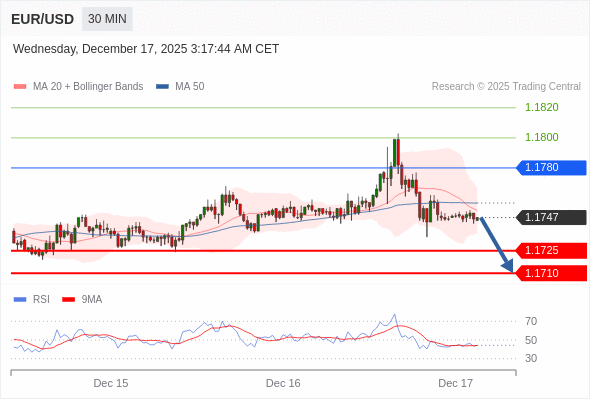 在 1.1780 之下,看跌,目标价位为 1.1725 ,然后为 1.1710 。