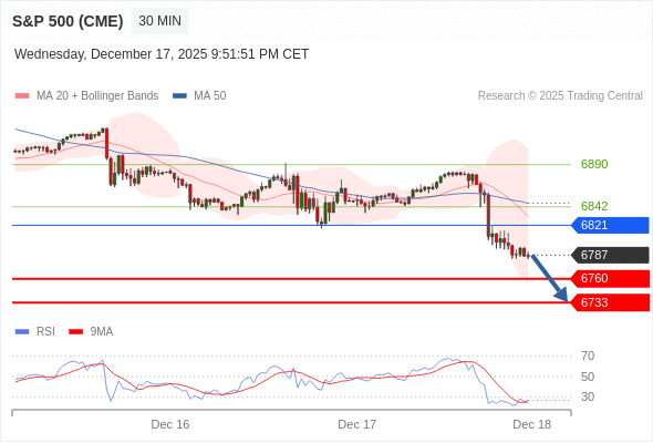 交易策略: 在 6821 之下,看跌,目标价位为 6760 ,然后为 6733 。