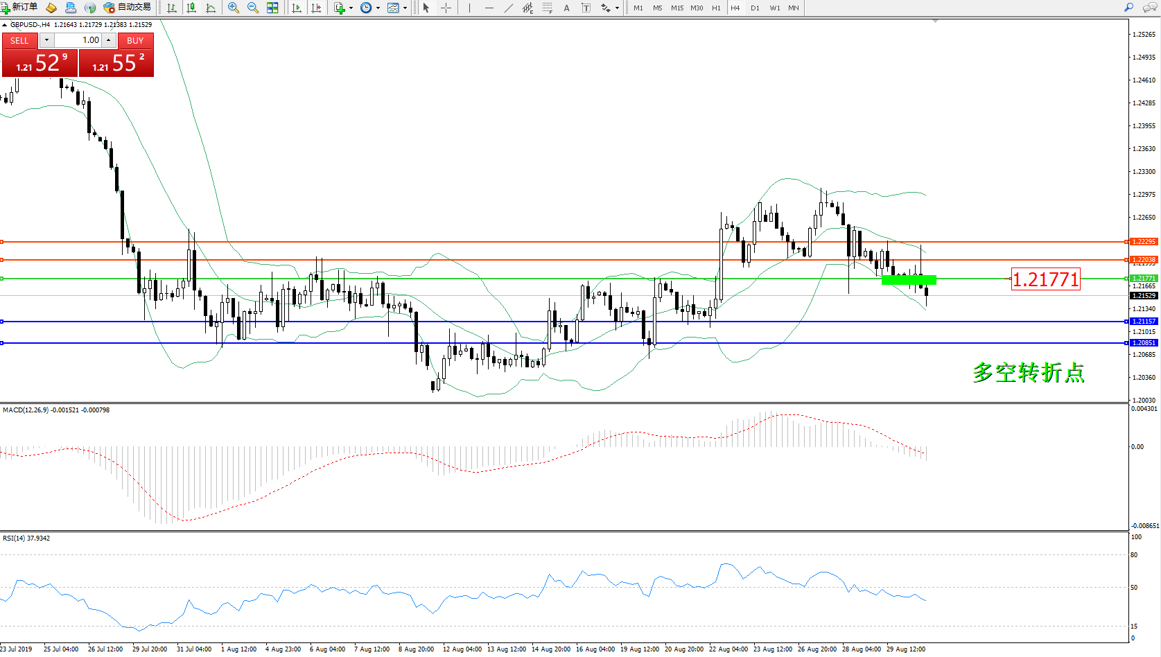 交易策略:1.21771下方看跌,目标1.21157、1.20851
