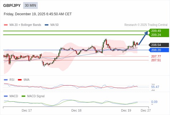 交易策略: 看涨,当 208.20 为支撑位。