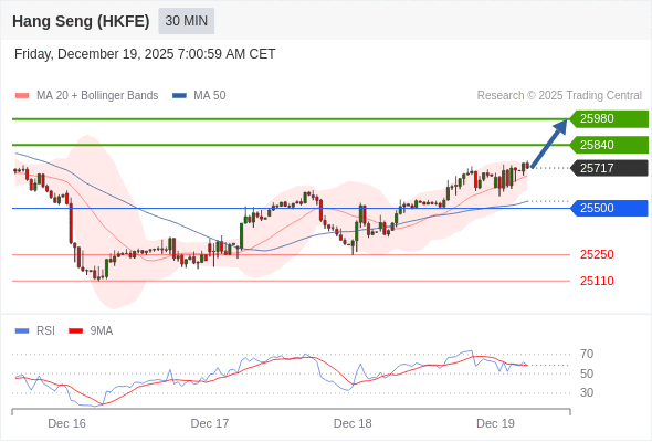 在 25500 之上,看涨,目标价位为 25840 ,然后为 25980 。