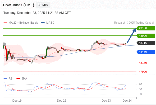 在 48460 之上,看涨,目标价位为 48920 ,然后为 49130 。