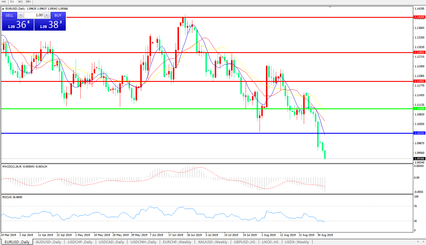 欧元兑美元EURUSD 日线图: