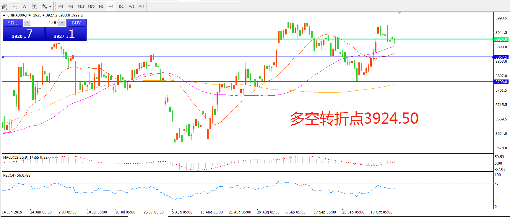 4小时图看,沪深300延续冲窄幅震荡,3924成为短期争夺焦点,均线系统走平,MACD绿柱缩短,RSI指标向下,日内延续震荡概率较大。