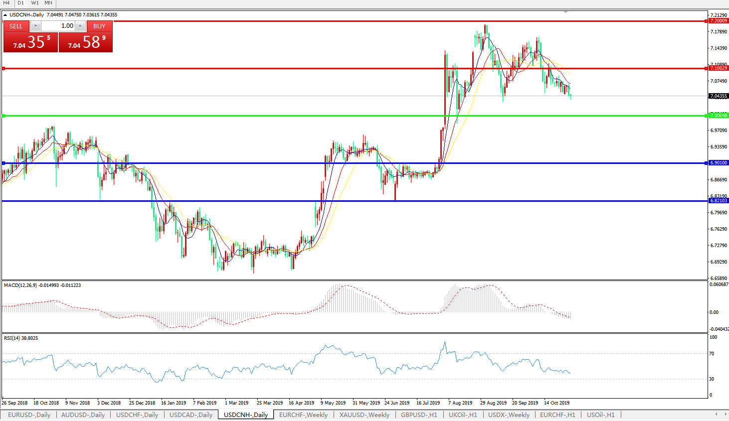 交易策略: 在7.0000之上,看涨,目标价位为7.1000,然后为7.2000。