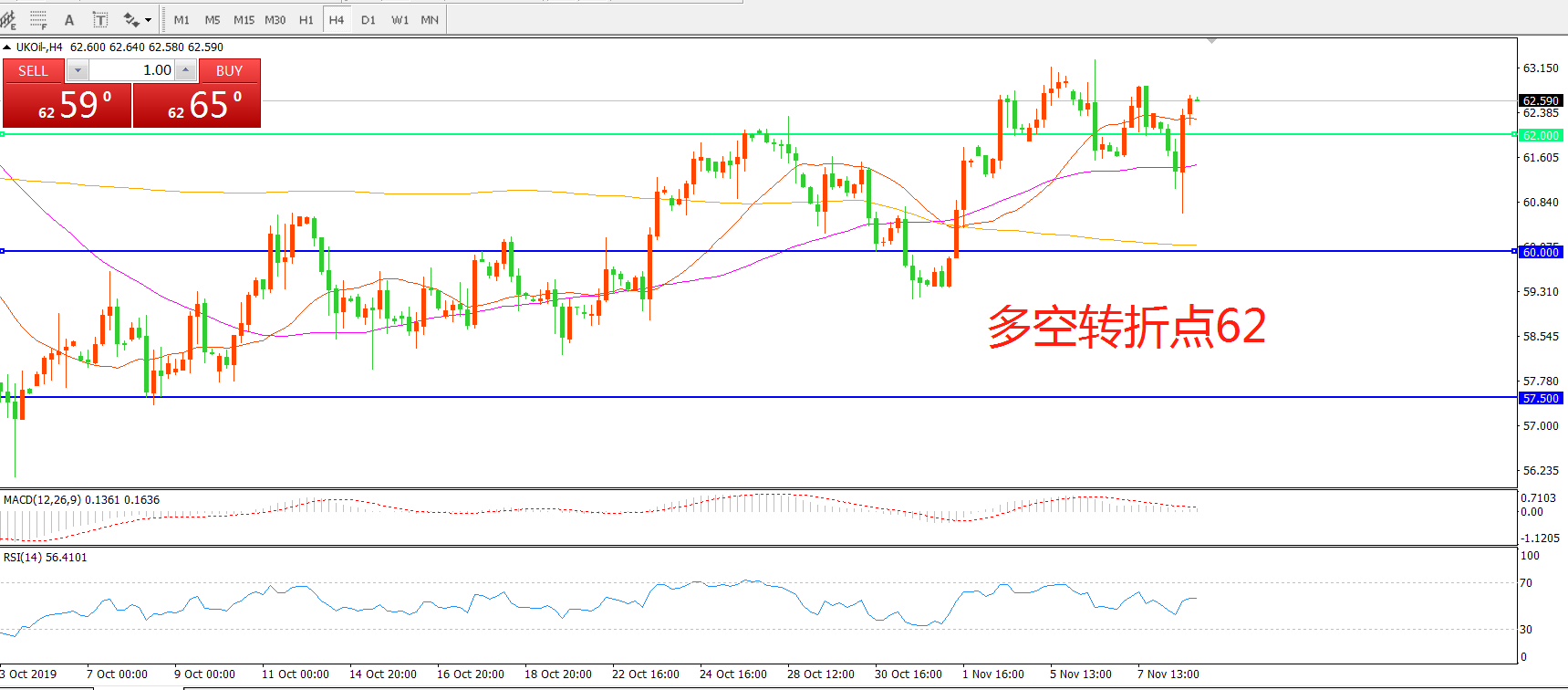 多空转折点:62.00