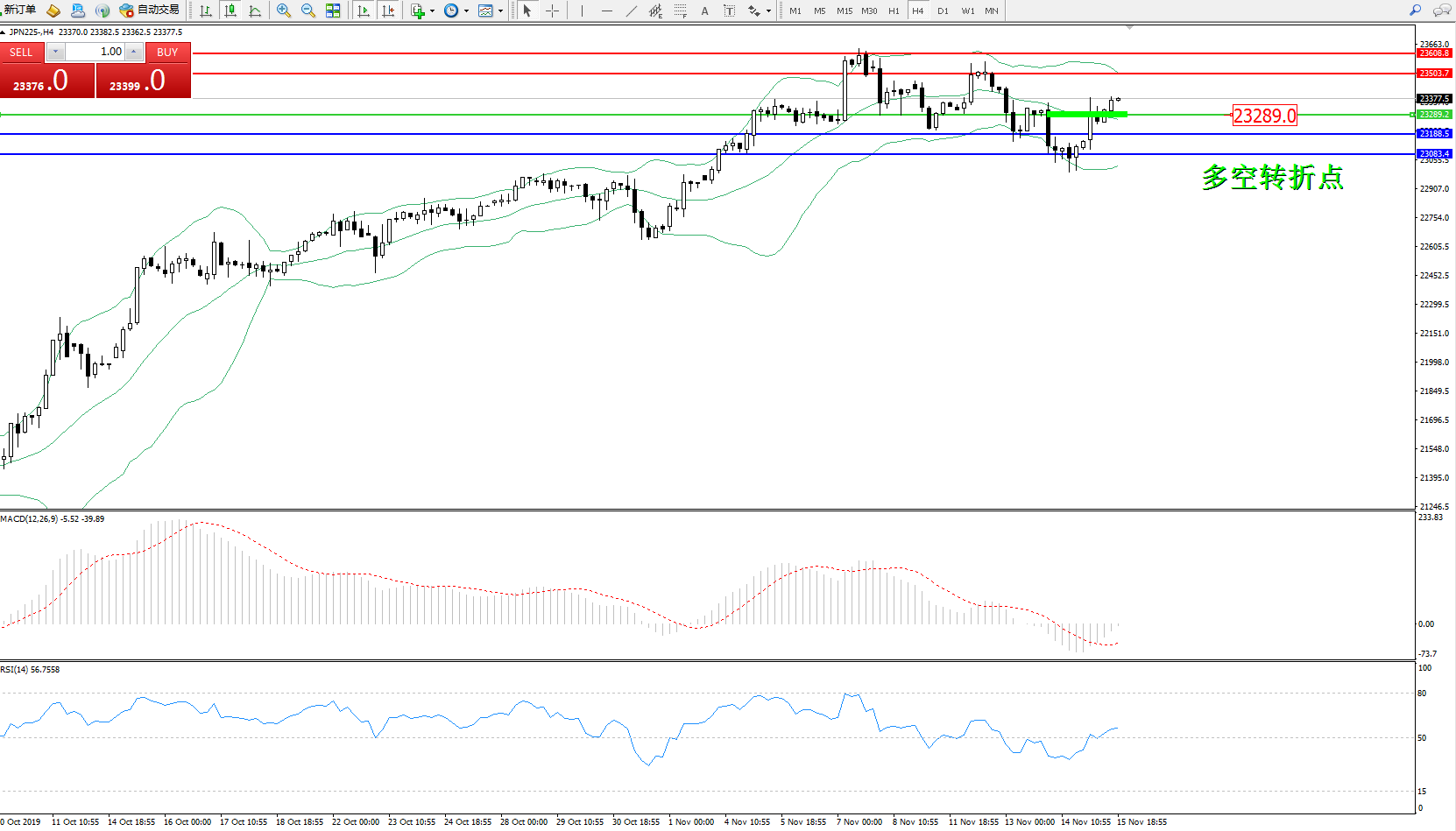 日经225指数11月15日(周五)收盘上涨182.45点,涨幅0.79%,报23324.00点。日本央行披露的操作讯息显示,自10月9日以来即未购入交易所交易基金(ETF)。在行长黑田东彦掌舵之下,日本央行出台多项刺激经济措施,其中包括积极买入股票,而这是央行开始买股以来暂停最久的一次。目前日本股市位于一年来高位,距离去年触及的30年高点不远。上述变化暗示,若日股维持在当前水准附近,日本央行有可能减少买进。摩根大通表示,目前的股市水平高于日本央行自行设定的需要支持的门槛,但是在基本面情况恶化时,预计日本央行会毫不犹豫地介入。