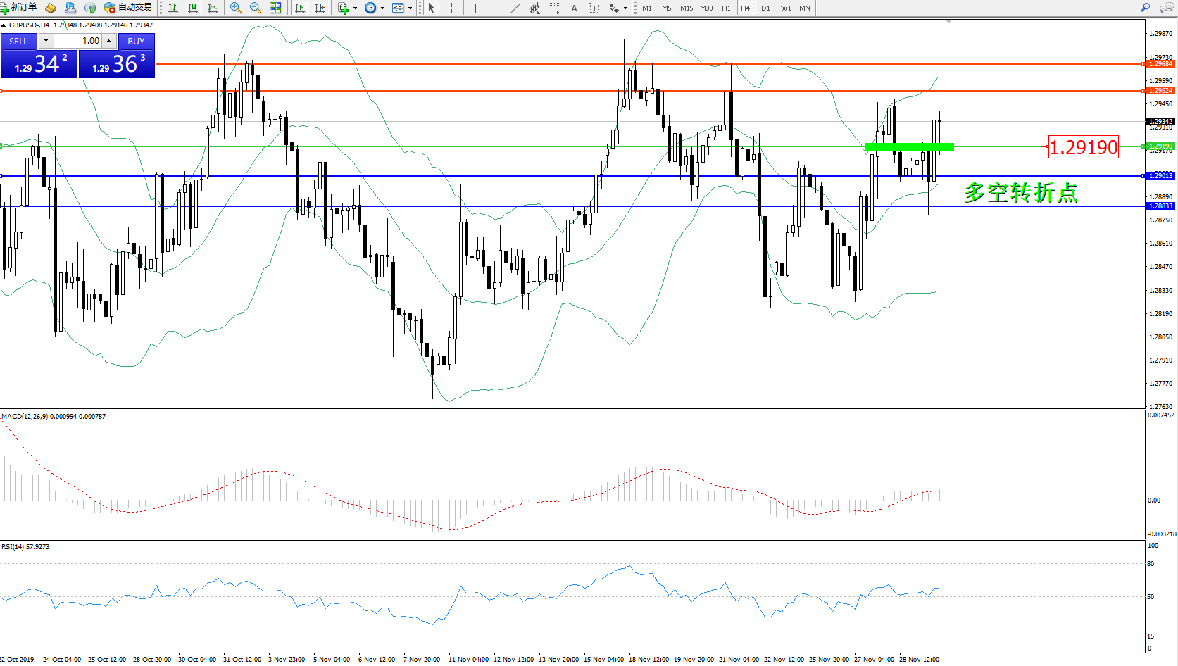 备选策略:1.29190下方看跌,目标1.29013、1.28833