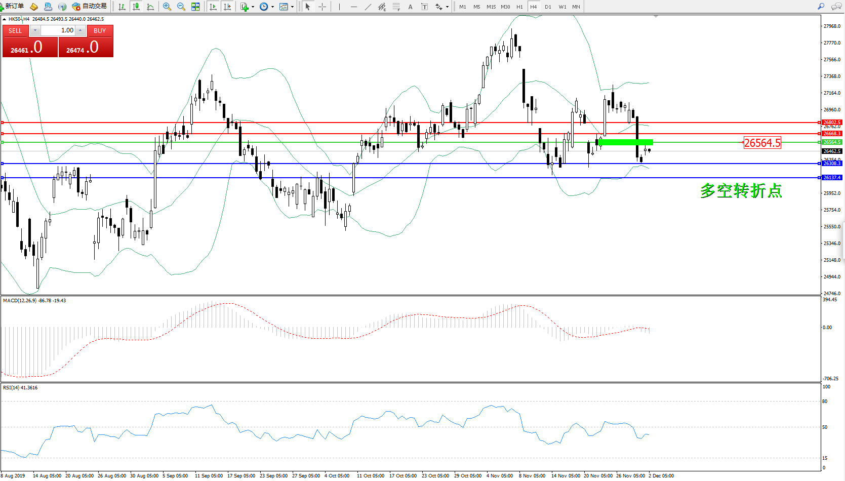 香港恒生指数122日(周一)收盘上涨98.23点,涨幅0.37%,报26444.72点;港股早上高开128点后,曾收低报26393。经上周回落后,本周港股大市预计将重启防御姿态,随后跟A股造好再扩大升幅,恒指高见26511。上周六公布的制造业PMI,已经重返荣枯线至50.2%,显示经济层面开始出现积极变化。另外券商板块迎来利好支撑。因此有希望出现探底反弹的走势。