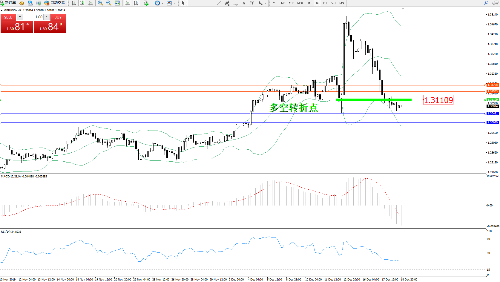 交易策略:1.31109下方看跌,目标1.304611.30029