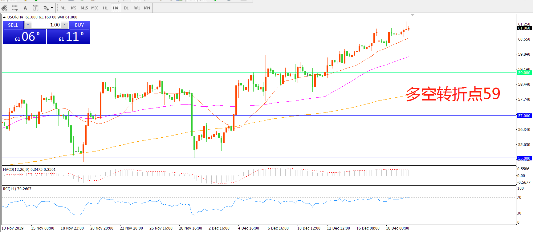 交易策略:在59.00 之上看涨,目标62.00       65.00