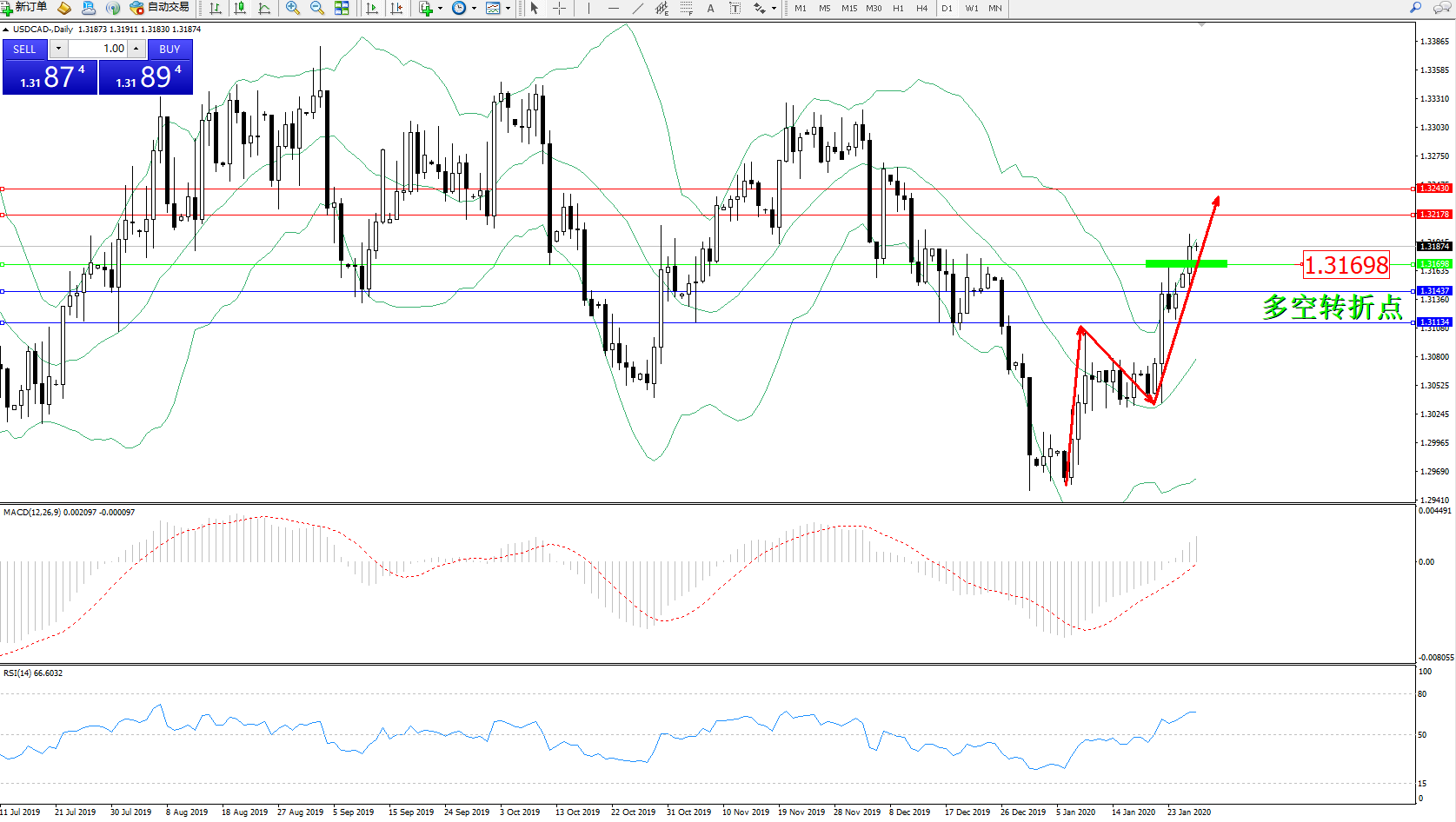 交易策略:1.31698上方看涨,目标1.32178、1.32430
