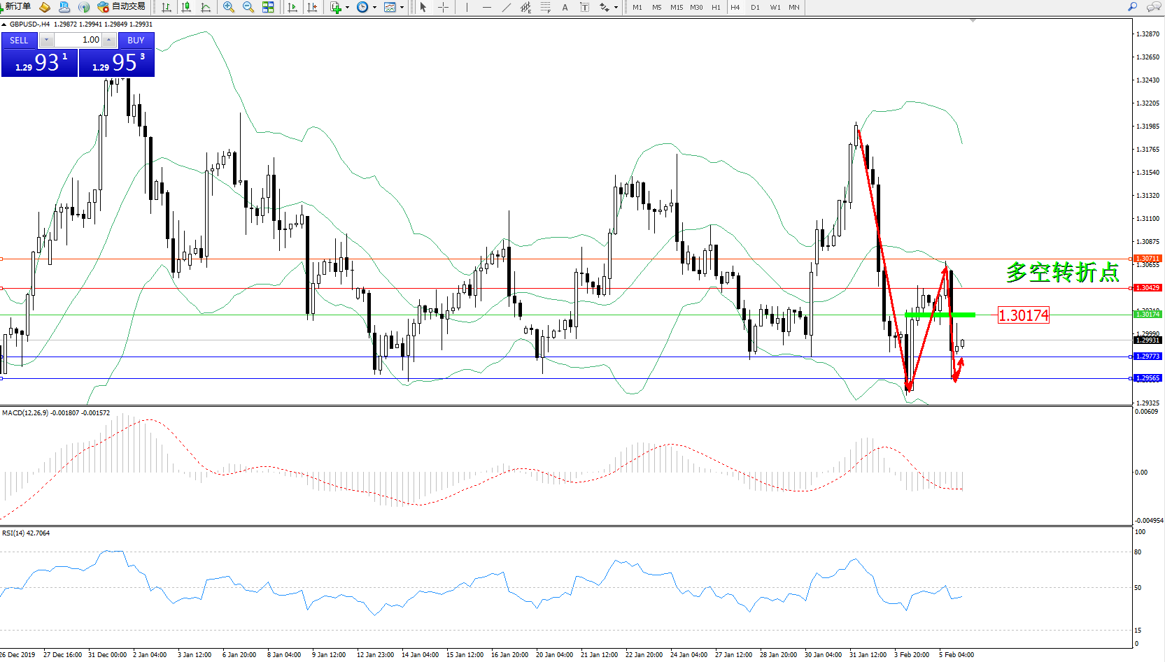 交易策略:1.30174下方看跌,目标1.297731.29565
