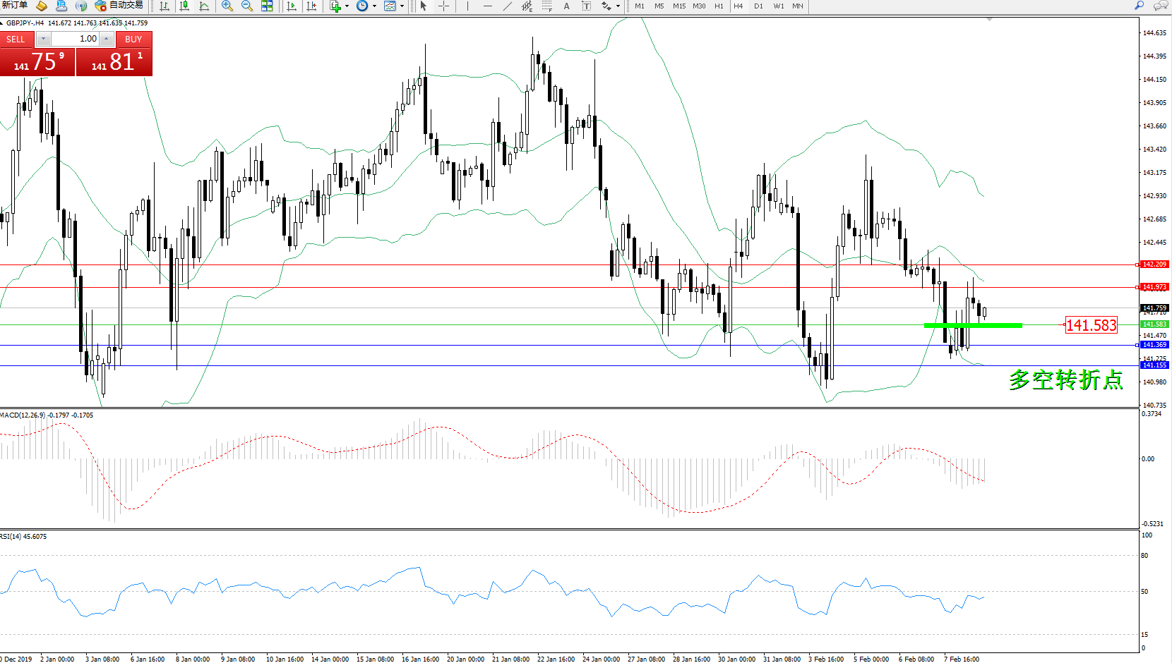 交易策略:141.583上方看涨,目标141.973142.209
