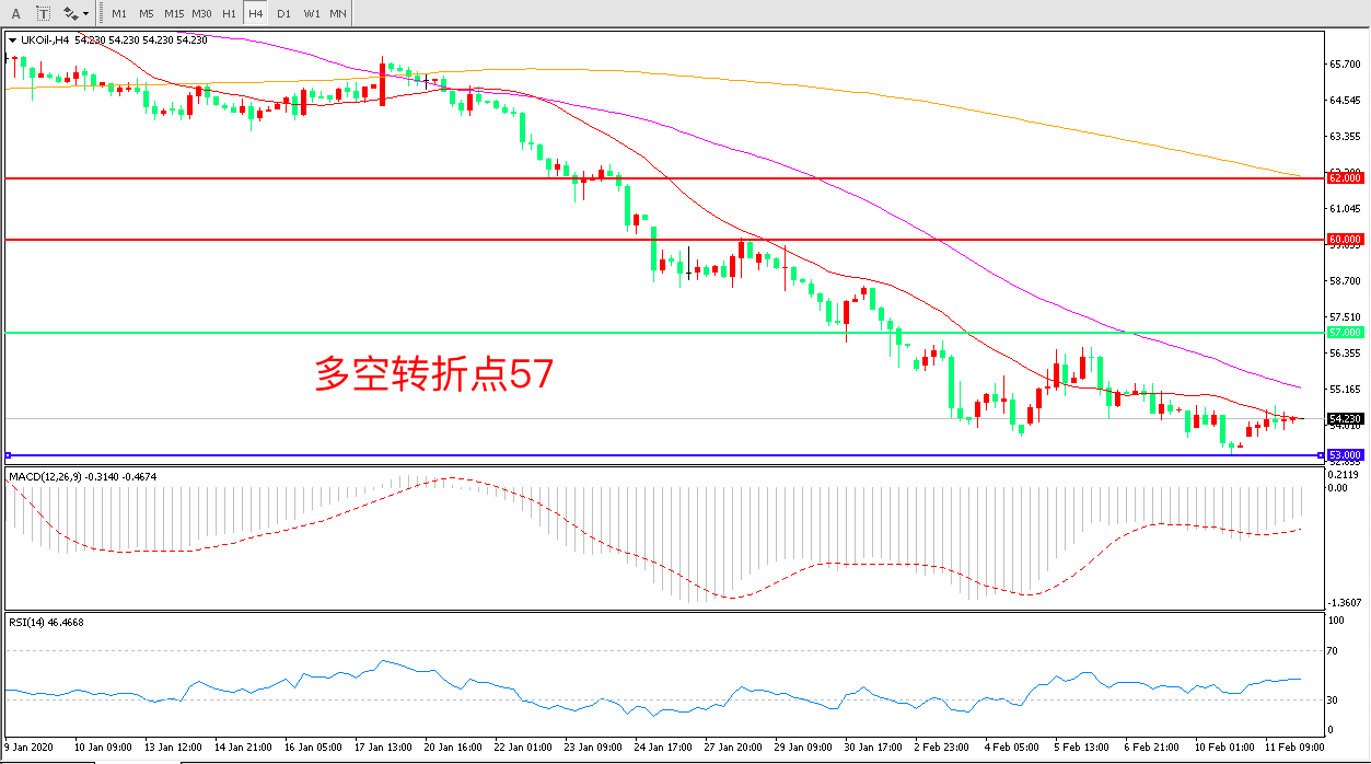 交易策略:在57.00之下看跌,目标53.00 50.00