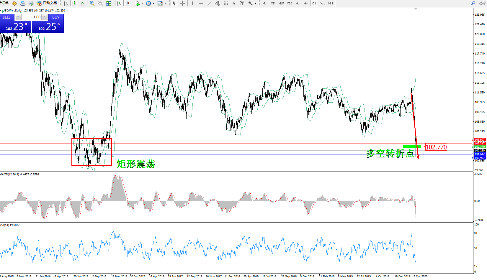 技术点评:空头动力持续重挫,下移至前期矩形震荡区域,布林带指标呈张口走势态势良好,有维持继续下行迹象,MACD指标处于空头区域继续强势下探中,RSI指标处于空头区域强势下移中;