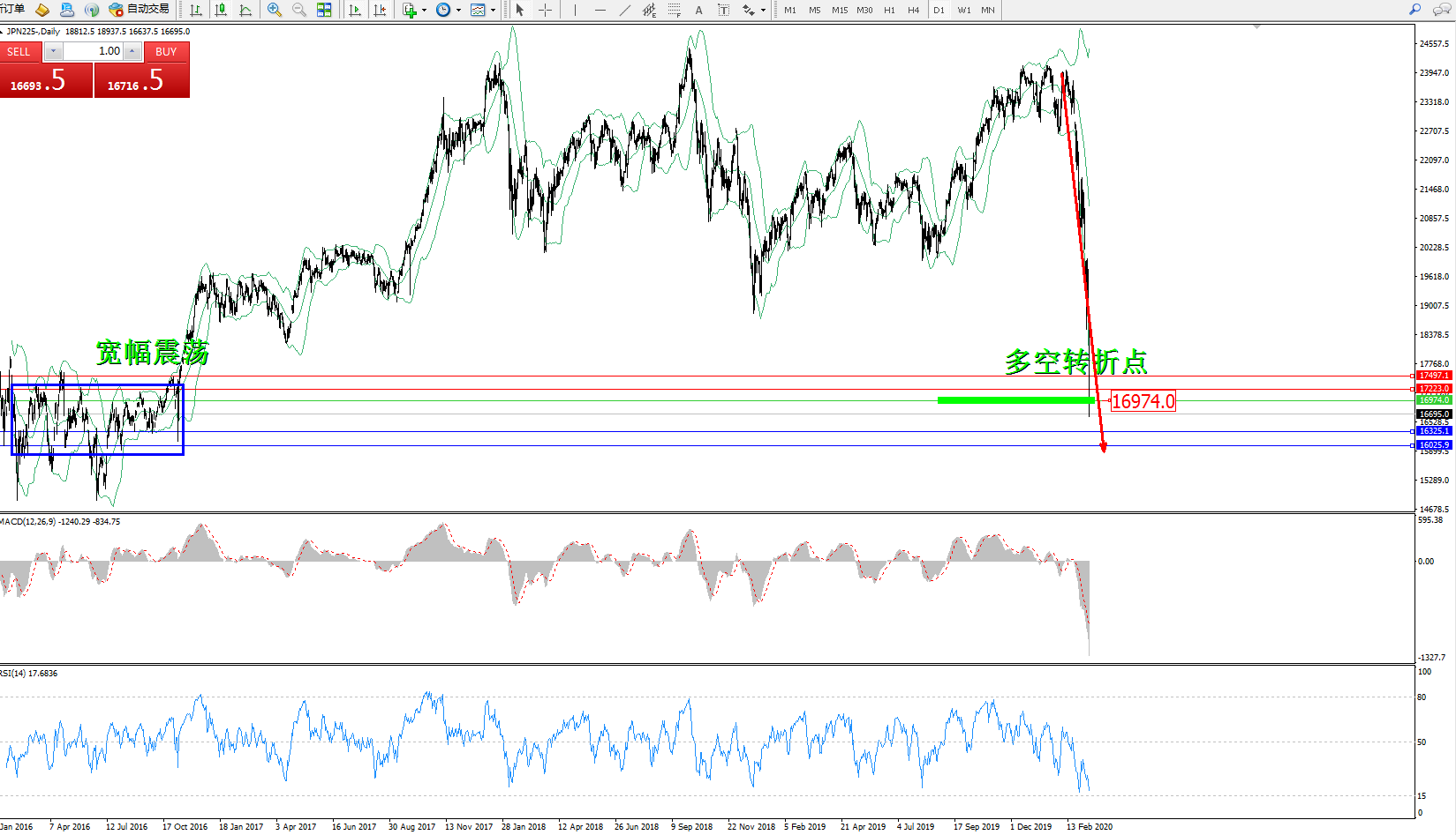 日经225指数312日(周四)收盘下跌885.56点,跌幅4.56%,报18530.50点。亚洲股市纷纷下跌,美国总统特朗普表示,将在未来30天内暂停从欧洲到美国的所有旅行。市场认为更多的限制措施正在冲击全球经济,全球金融市场恐慌情绪加剧,日本央行能采取的行动较为有限,1-3月日本大型制造业者信心降至近九年低位,表明卫生风险对经济的影响扩大,此前经济已经难以维持复苏轨道。2月进行的政府调查显示,大型制造商预计未来一个季度形势依然紧张,加大了决策者出台更多措施应对疫情危机的压力。