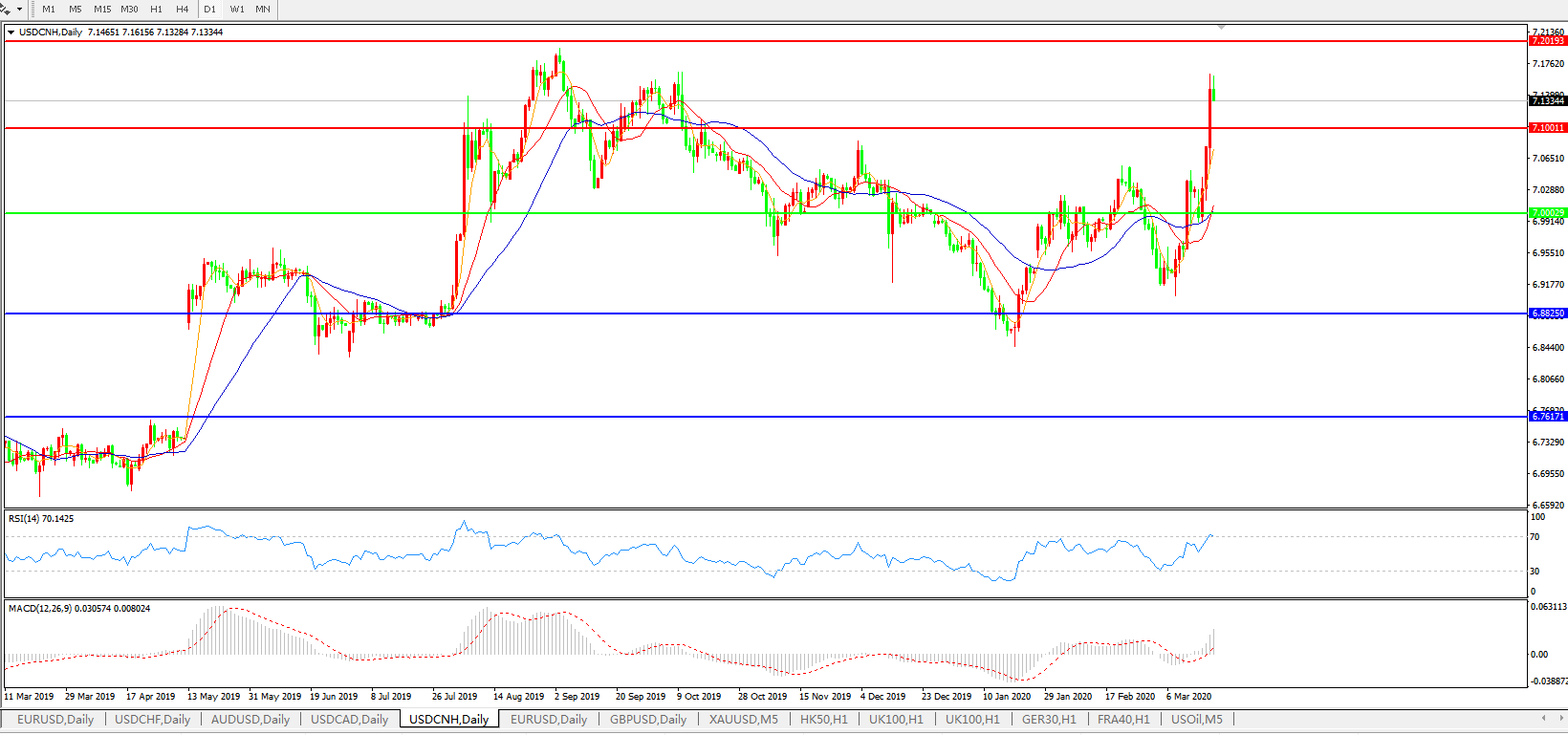 在岸人民币兑美元周四收贬650点或0.9%创逾五个月新低,中间价亦跌近200点至逾四个半月新低。交易员称,全球公共卫生危机令恐慌情绪持续发酵,市场打响美元抢夺战,美元指数维持在三年高位,人民币承压下跌,但与其他非美货币相比仍维持相对强势。 由于中国境内公共卫生态势已经基本控制,人民币相对抗跌,后市走势还要看市场恐慌情绪能否缓和;如果流动性紧缩态势缓解美指止升,人民币跌幅料有限。另外由于美元流动性仍紧张,短端中美利差继续倒挂,而美元需求也加剧长端卖压,一年期掉期点盘中再度下破500关口,创2月底以来新低。 交易员并表示,虽然目前市场普遍预计人民币与其他货币相比,仍将表现得较为抗跌。但由于中国仍旧是新兴市场国家,人民币也是风险货币,预计资金整体仍保持流出态势。极限情况下可能会触及前期低点到7.17-7.2的水平;