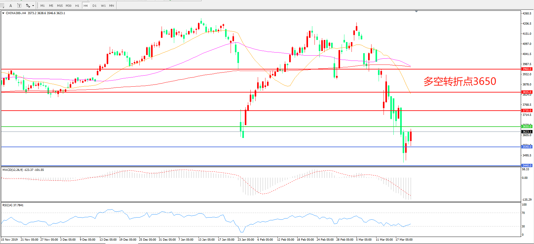 交易策略:在3650之下看跌,目标3540.00 3440.00