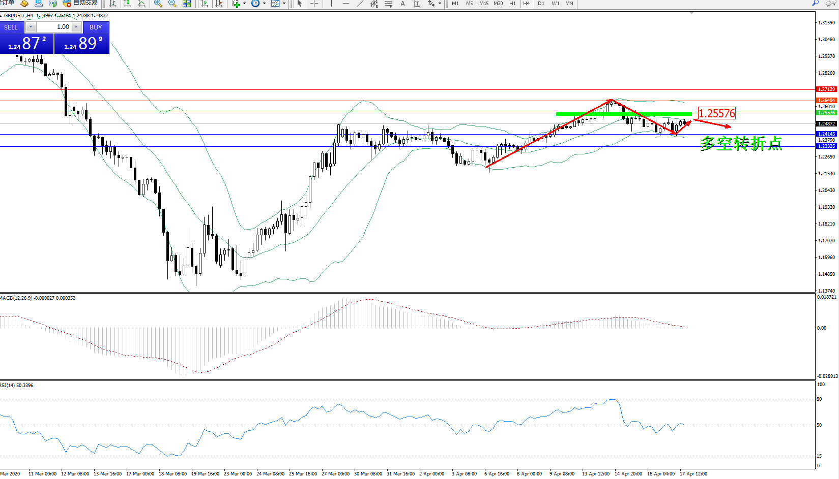 备选策略:1.25576上方看涨,目标1.26404、1.27129