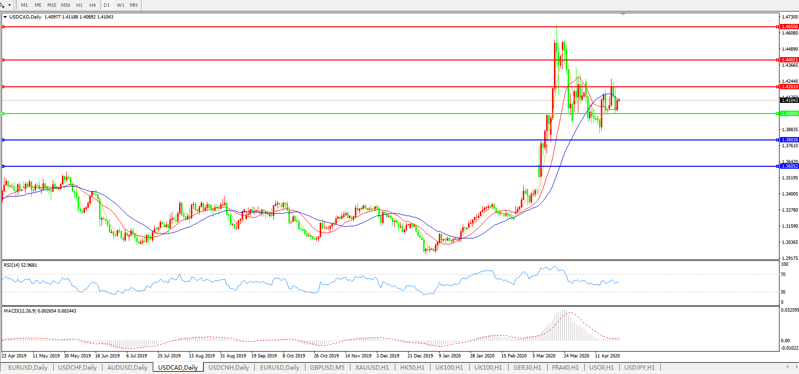 美元兑加元USDCAD 日线图: