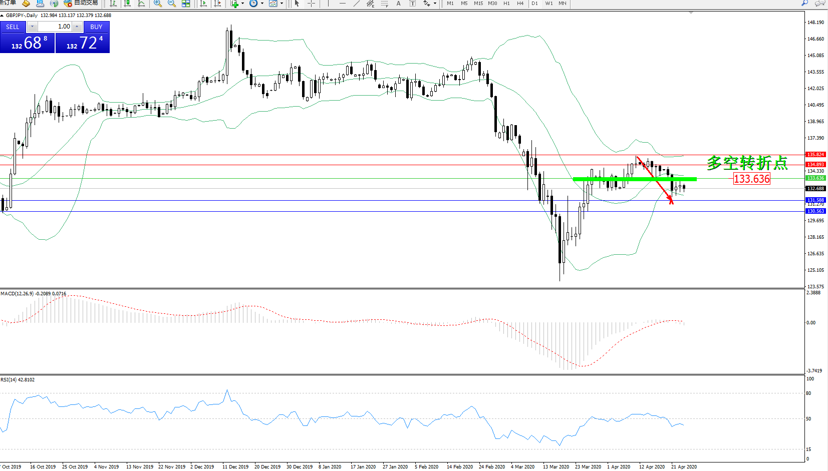 技术点评:高位空头动力缓慢下移至布林带指标中下轨区间弱势震荡平移,布林带指标呈收口平移后开始有持续下移迹象,且有开始再次张口下移态势,MACD指标跌破0轴线进入空头区域弱势徘徊有继续下移迹象,RSI指标空头动力跌破50均衡线进入空头区域弱势整理平移中;