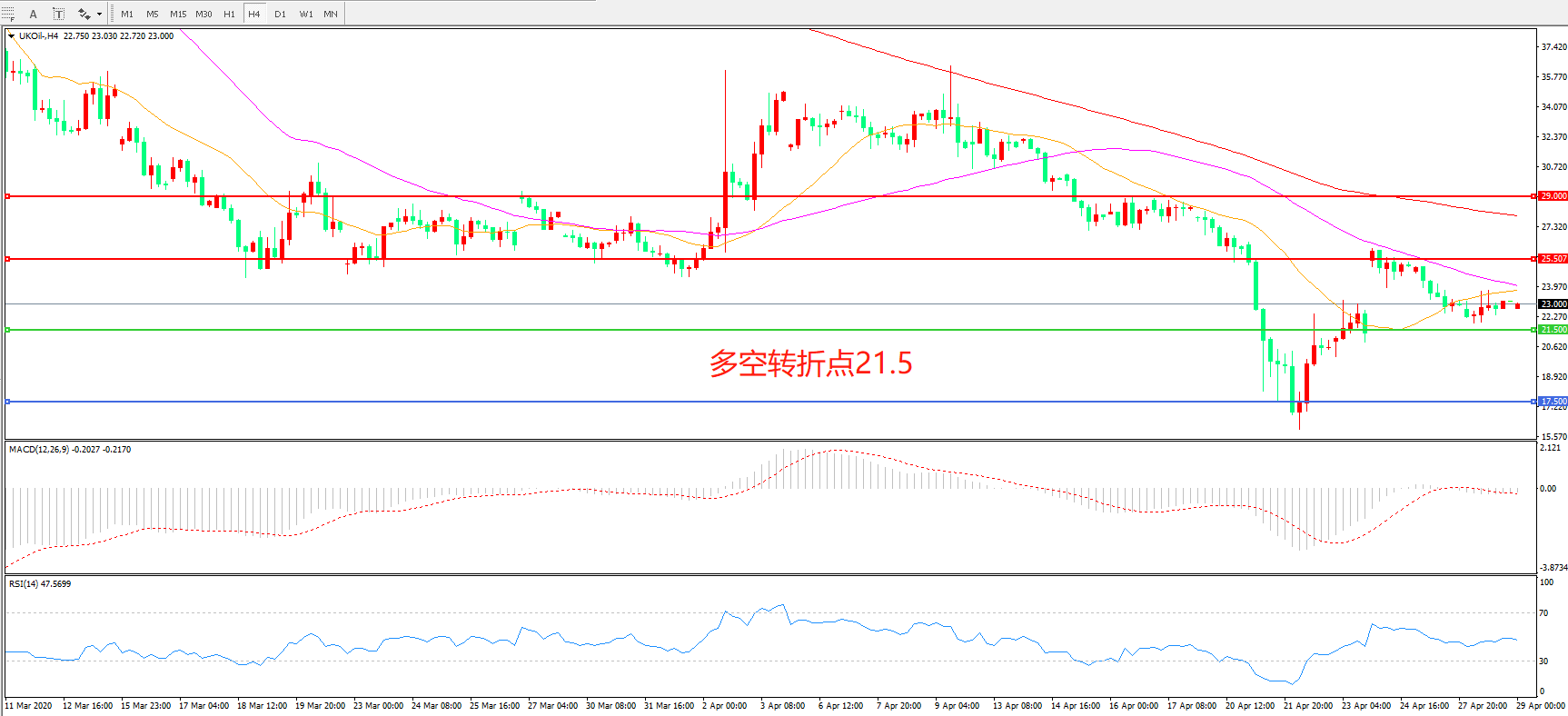 周三(4月29日)凌晨,美国石油协会公布数据显示,美国API原油库存增加998万桶,低于预期,汽油库存意外减少,利好原油。数据公布后,布油短线快速走高,截止发稿前,收报23.07美元/桶。