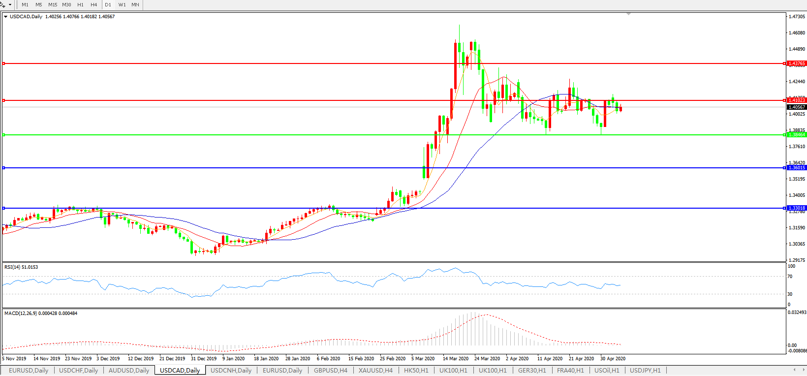 美元兑加元USDCAD 日线图: