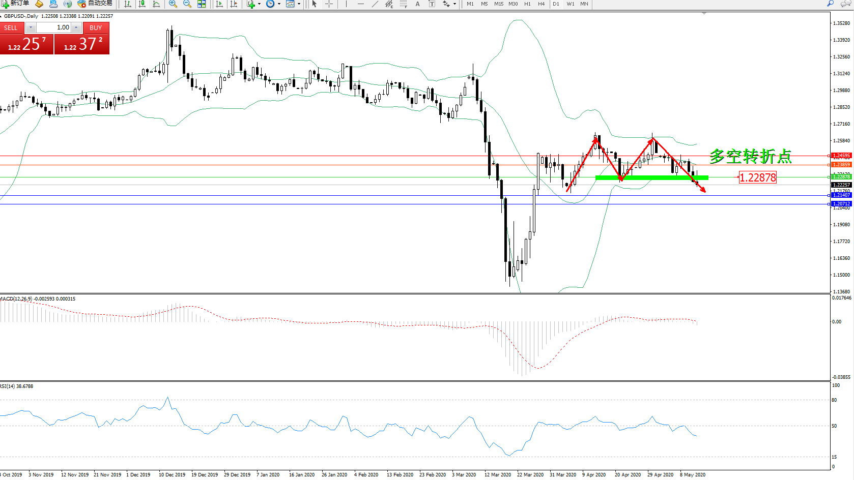 交易策略:1.22878下方看跌,目标1.214071.20712
