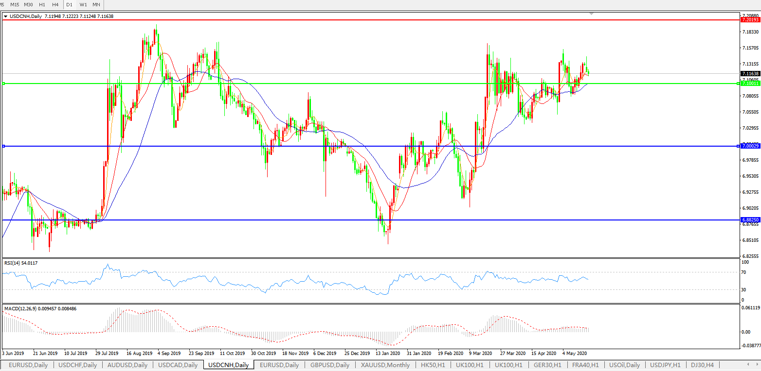 美元兑人民币USDCNH 日线图: