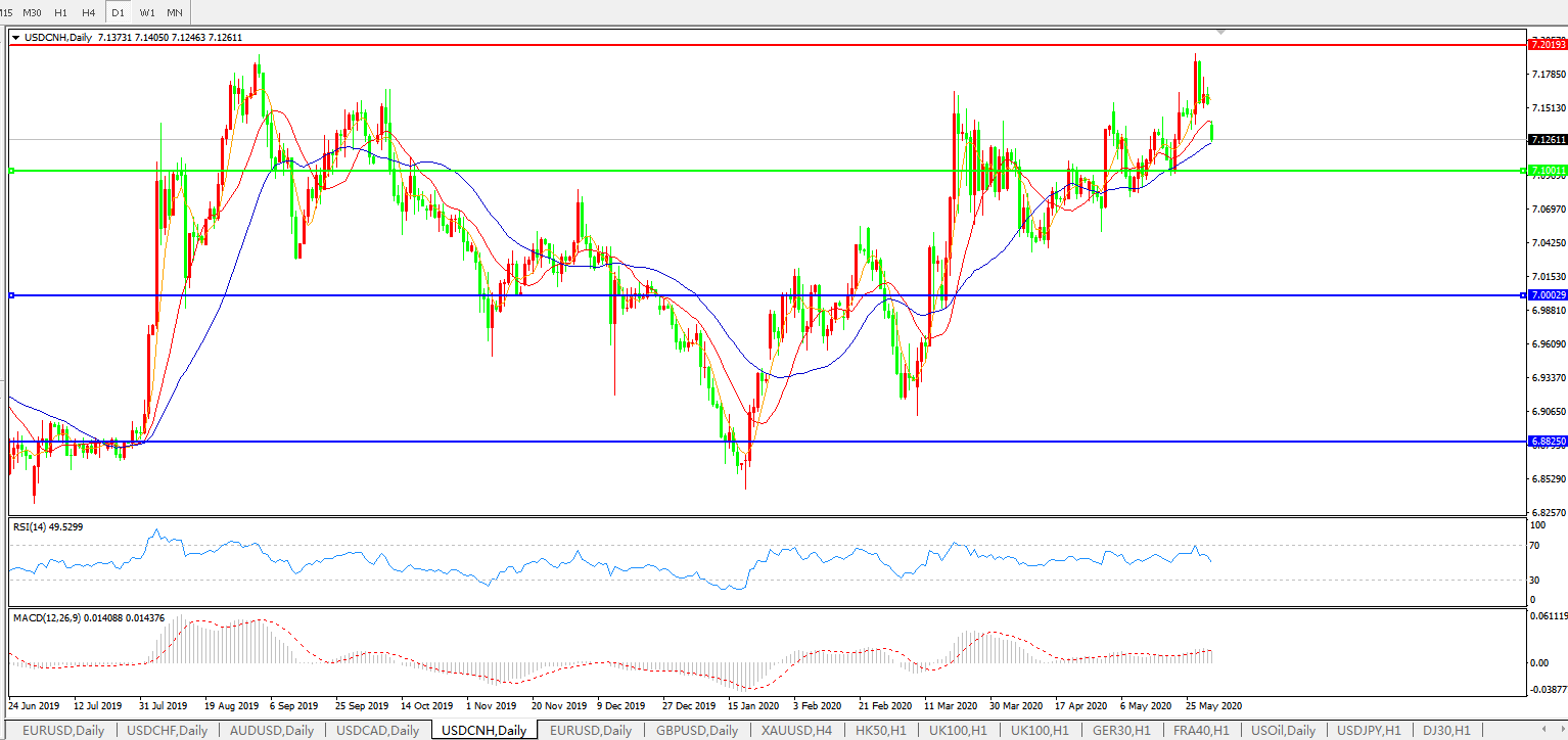 美元兑人民币USDCNH 日线图: