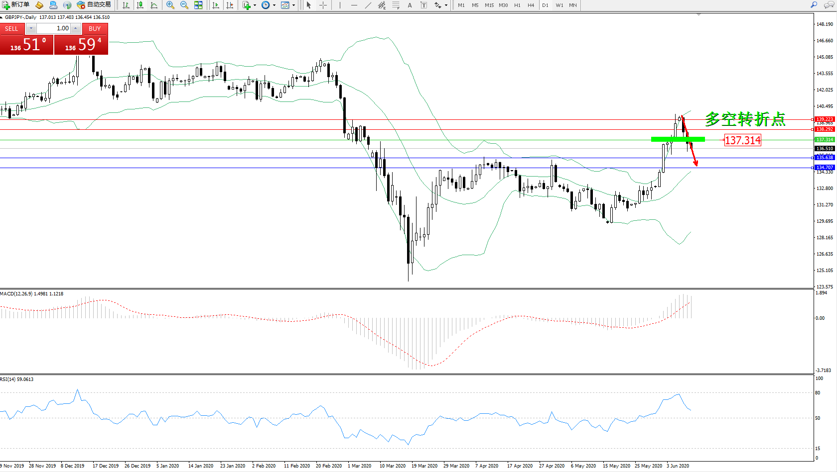 交易策略:137.314上方看涨,目标138.292、139.223