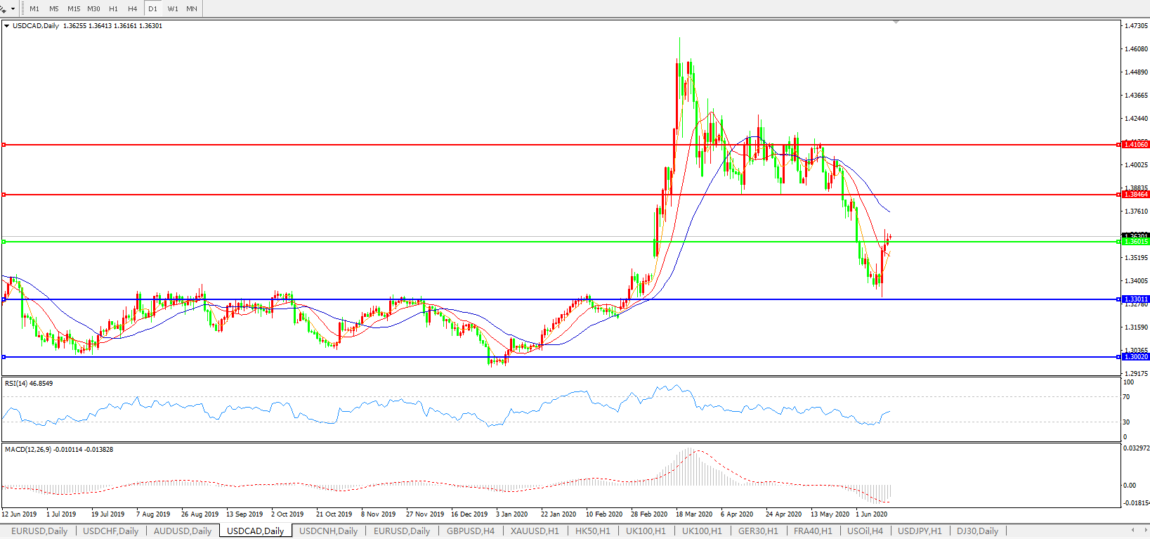 美元兑加元USDCAD 日线图: