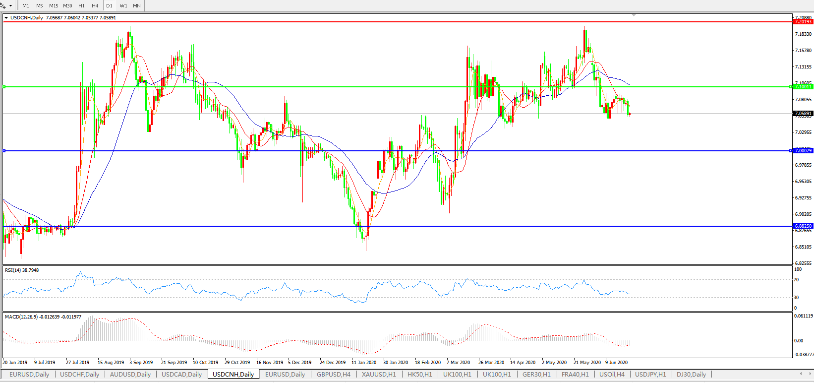 交易策略: 在7.1000之下,看跌,目标价位为7.0000,然后为6.8820。