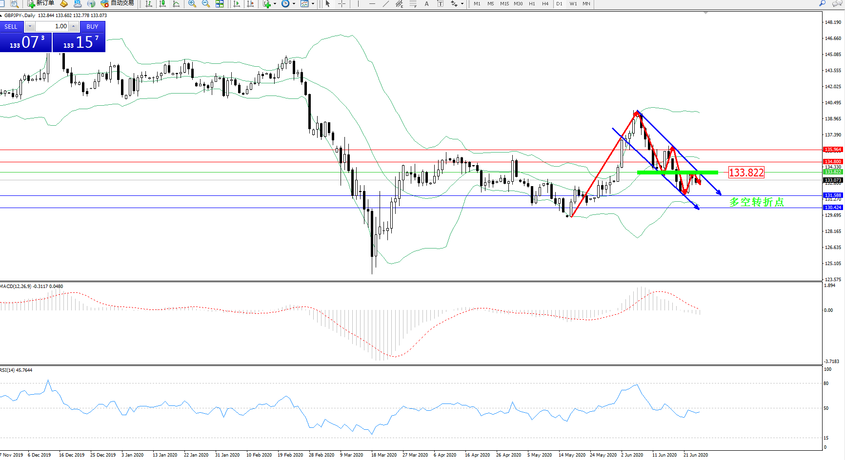 技术点评:高位空头动力呈阶梯式震荡回撤至布林带指标中下轨区间弱势震荡向下移动中,布林带指标呈收口走势后开始维持整理平移中,在即将触及下轨附近得到短暂支撑,开始有回升迹象,但反转上行动力不足,依旧处于弱势,有继续下行态势,MACD指标空头动力弱势整理下移破0轴线进入空头区域窄幅整理中,RSI指标处于50均衡线下方维持窄幅震荡平移中;
