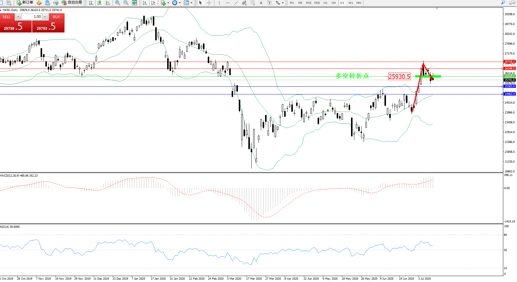 技术点评:多头动力延续布林带指标上轨附近强势拉升后,高位抵达26784位置开始震荡回撤,纠结于布林带指标中上轨区间缓慢下移中,布林带指标呈收口走势中,高位下行或将短暂持续数日,MACD指标处于0轴线上方多头区域高位持续整理平移中,RSI指标处于多头区域高位整理平缓下行中;