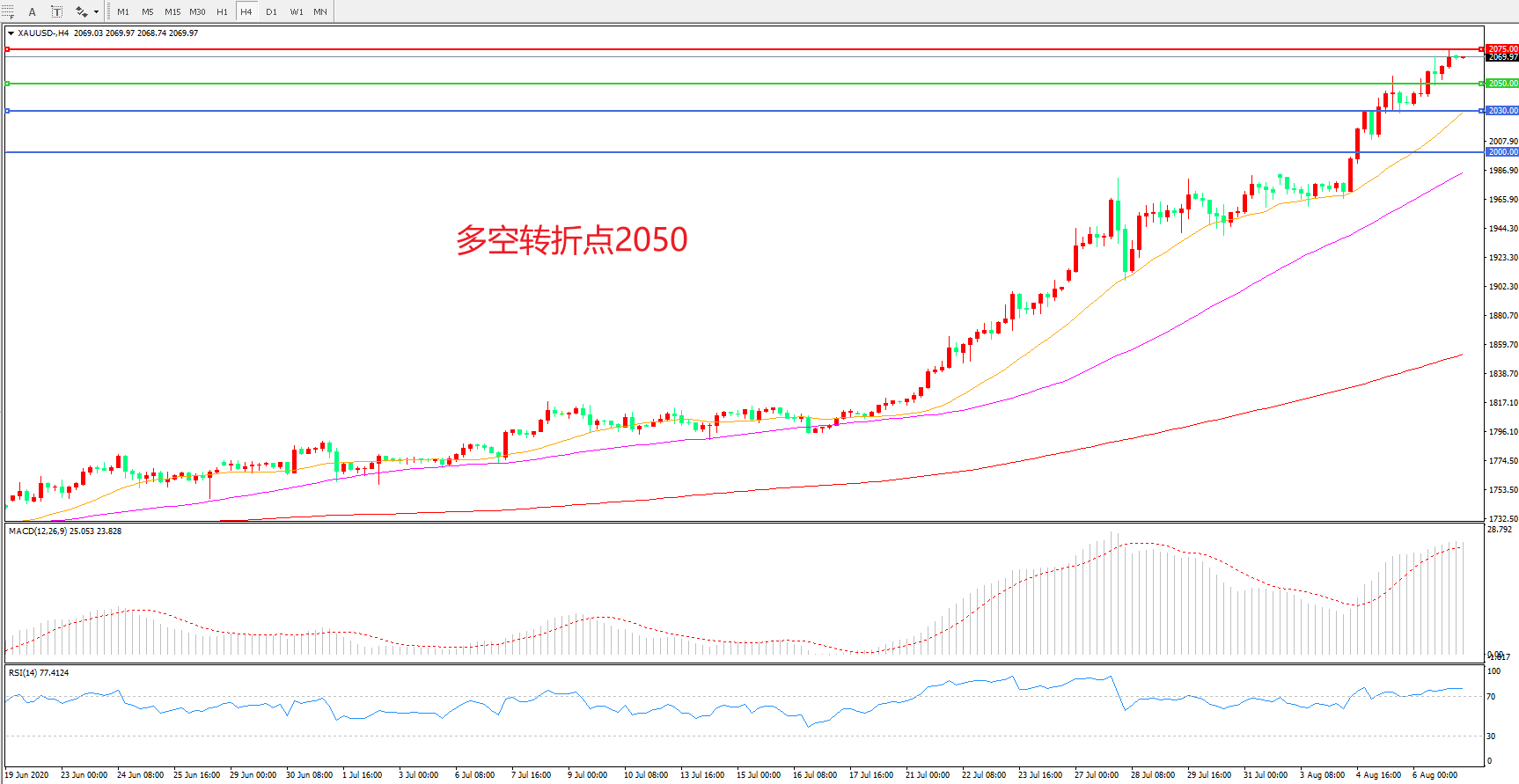 周三(8月6日),现货黄金持续爆发,最高升至2076.60美元/盎司,再创历史新高。自本周二首次突破2000美元大关后,金价年内已涨超36%,今日即将公布的美国非农就业报告将进一步揭示美国的复苏情况,也将为黄金提供更多方向,如果就业人数增幅较过去两个月大幅放缓,将预示着疫情重燃,为黄金走高提供动力。