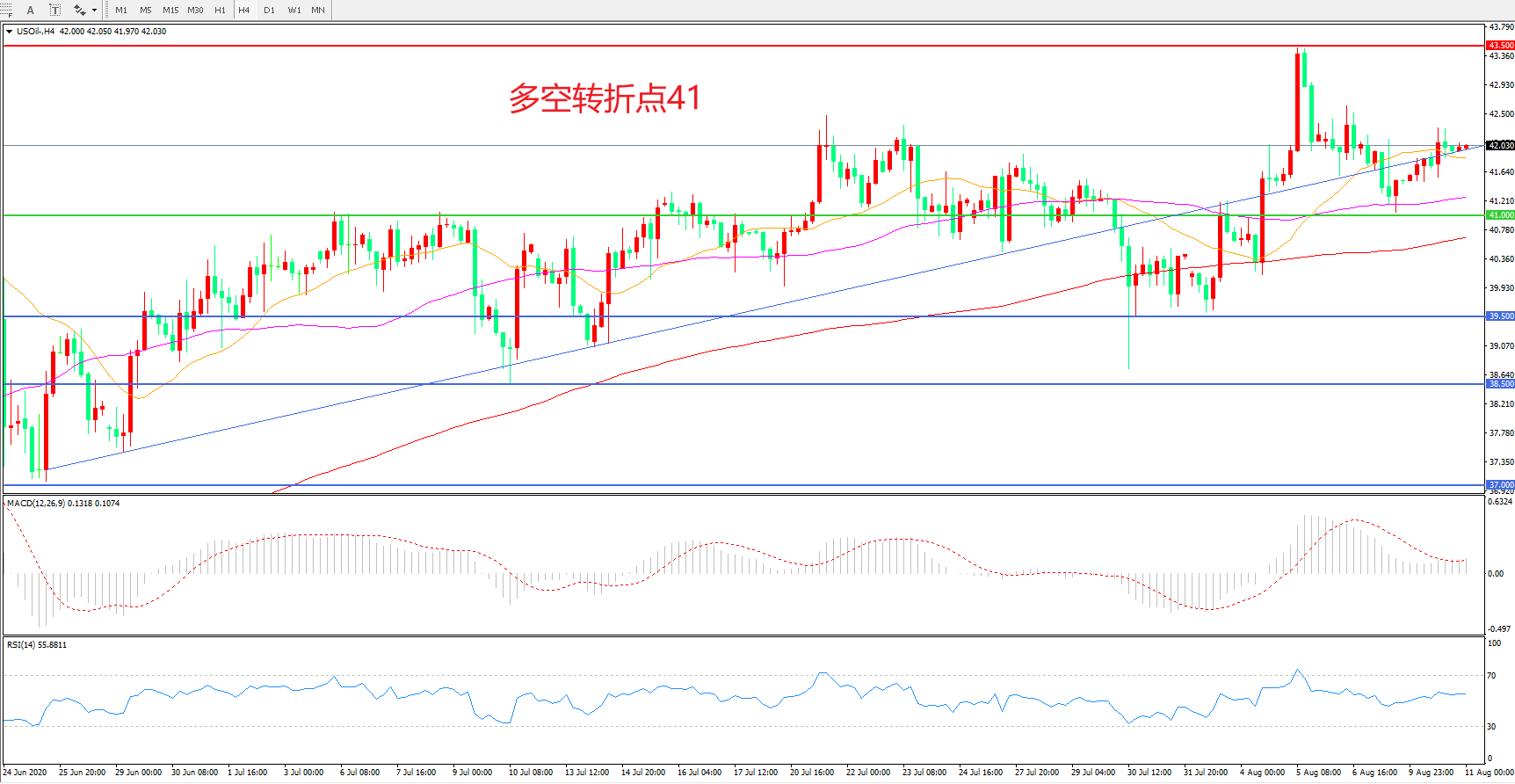 交易策略:在41.00之上看涨,目标43.50 46.00