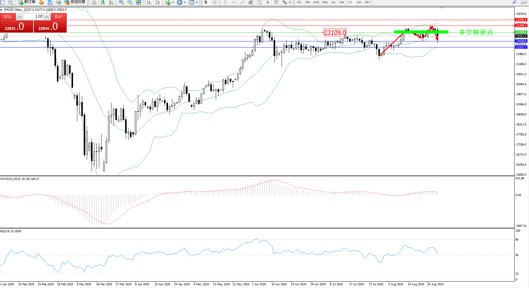 日经225指数8月28日(周五)收盘下跌325.86点,跌幅1.40%,报22883.00点。日本首相安倍晋三宣布正式辞去日本首相一职。安倍希望避免因自身慢性病的恶化而影响国政的事态。安倍本月24日成为日本连续执政时间最长的首相。安倍晋三本月17日和24日到庆应大学医院就诊,由于他被“溃疡性大肠炎”慢性病纠缠已久,近日一再入院检查,他的健康状况乃至政治前途引起大关注。安倍晋三周五宣布了应对新冠病毒的新措施,其中包括将检测能力提高到每天20万次检测,并力争到2021年中期让所有公民获得足够的疫苗。 安倍晋三还表示,将从9月1日开始允许具有居留身份的外国人进入日本。
