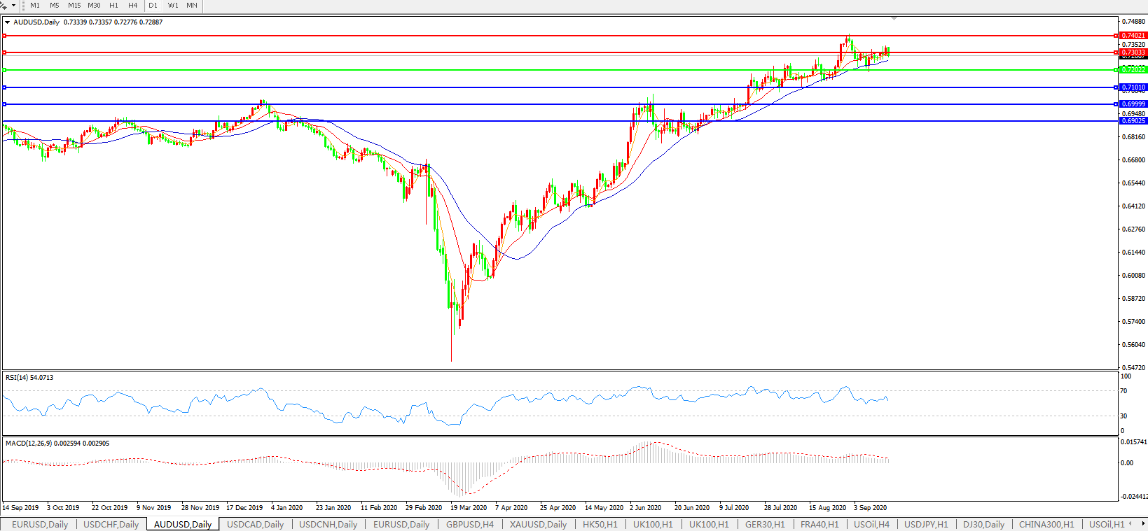 压制位:0.7300 0.7400