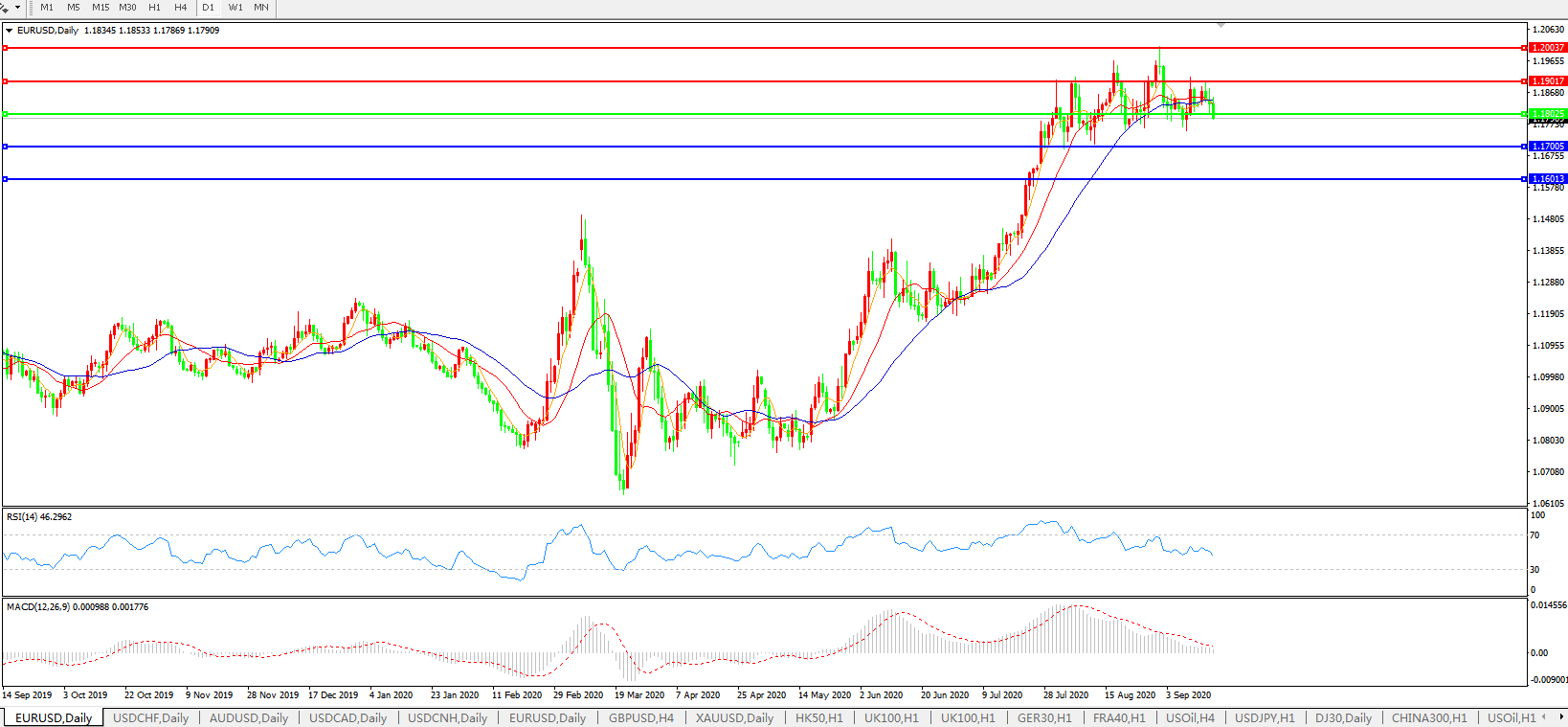 交易策略:1.1800下方看跌,目标1.1700、1.1600