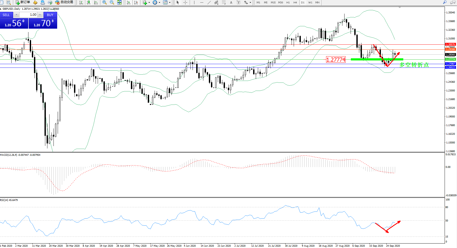交易策略:1.27774上方看涨,目标1.29308、1.30076