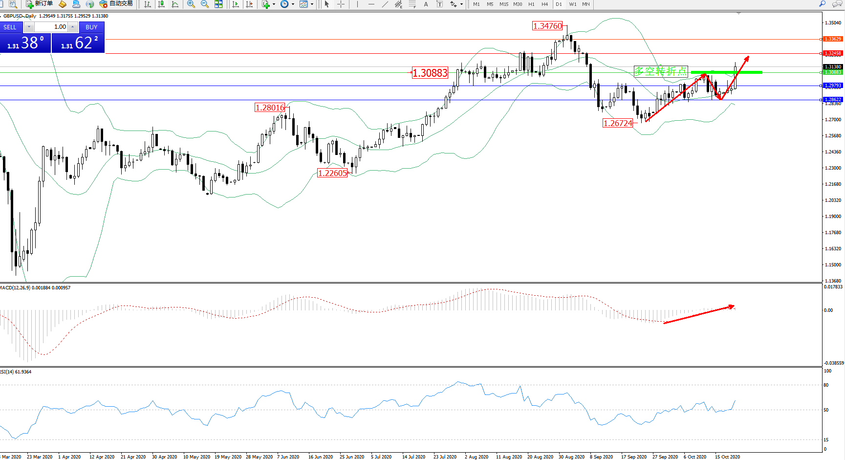 备选策略:1.30883上方看涨,目标1.32458、1.33629