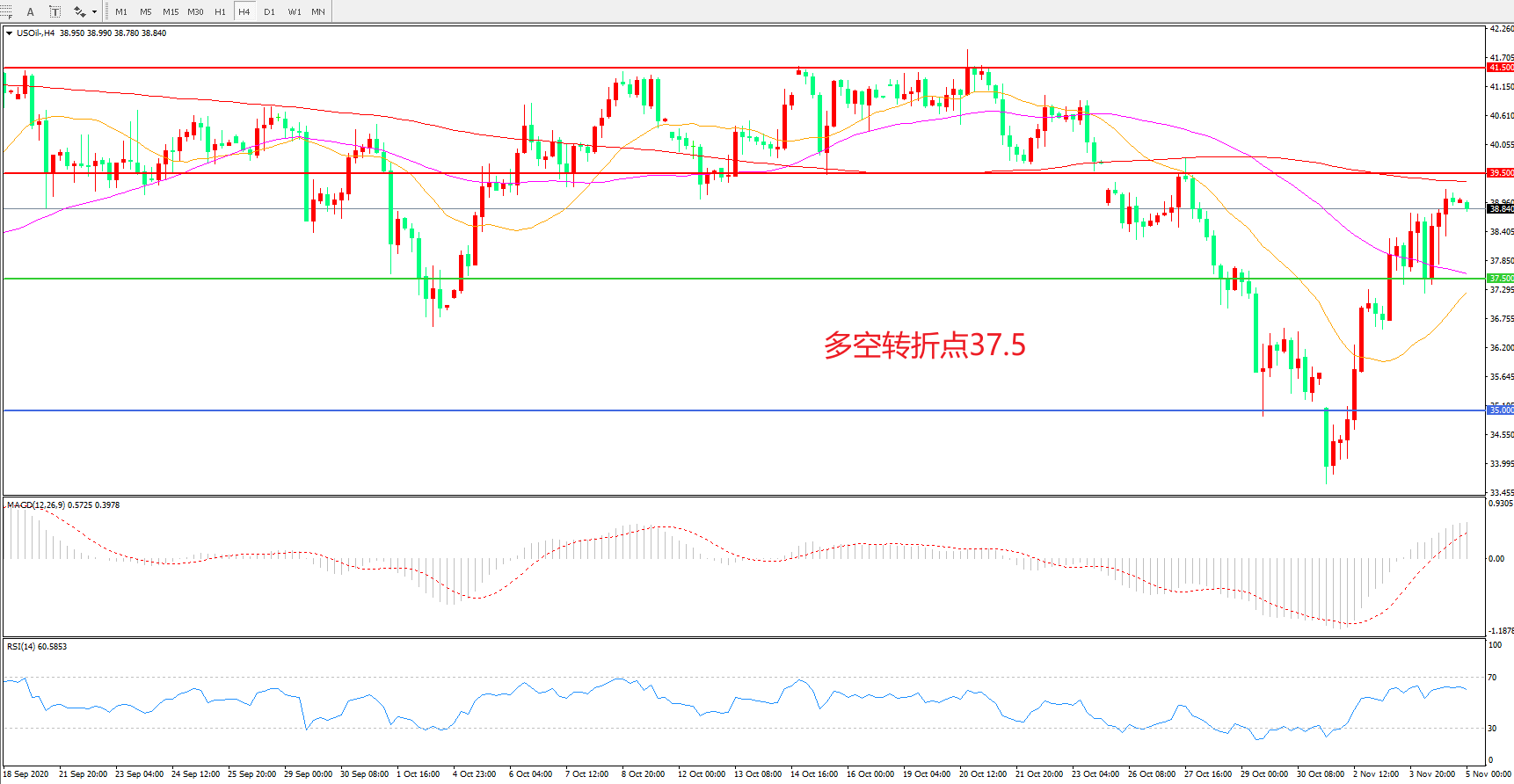 多空转折点:37.50