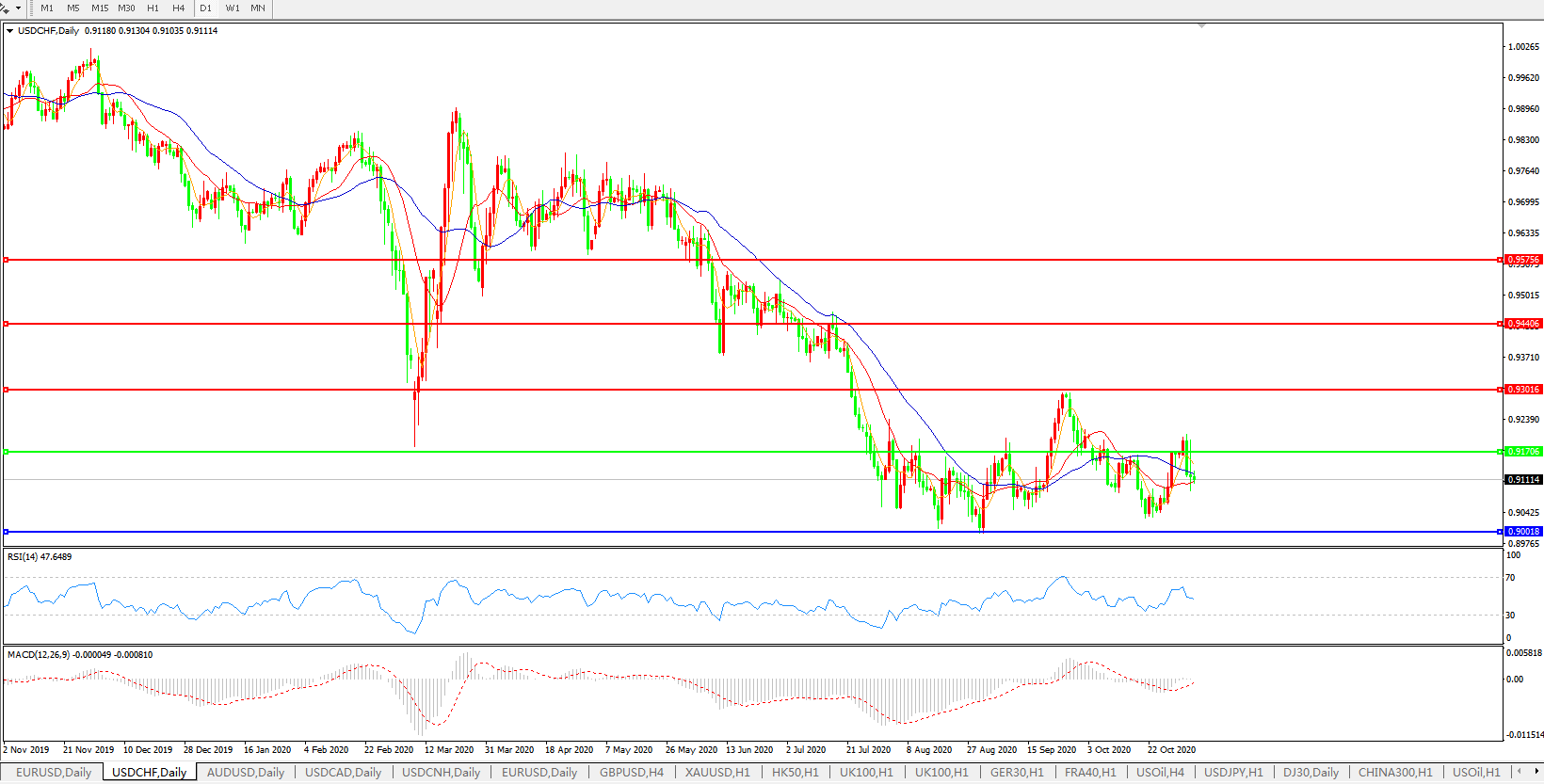 美元兑瑞郎USDCHF    日线图: