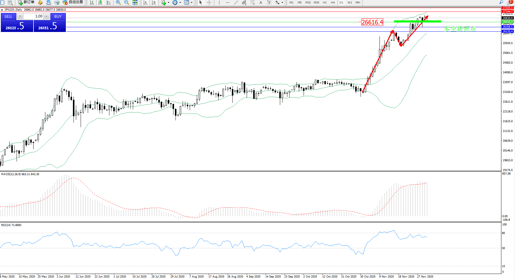 交易策略:26616上方看涨,目标27144、27325