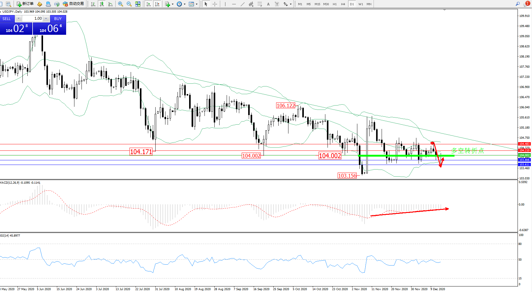 美元兑日元失守104关口后再度失而复得至104.015附近整理,美联储强化宽松若落地年内汇价将有更多挫跌空间;令美元指数日内继续承压,而非美货币则集体走强。同时,欧洲市场风险情绪受英国有序脱欧希望重燃的带动继续走强,也令投资者进一步抛售此前因为避险而买入的美元现钞,这令美元在汇市上遭受的抛压超过日元。本周三美联储决议可能诱发突破拐点。一旦美元兑日元汇价受到美元货币供应量进一步增加的打压而失守103.80关键趋势支撑,那么下行至年内前低103.18的通道就将再度打开。而考虑到日本央行即使有意干预,也要到2021年初才能拿出实际行动,美元兑日元年底前将难有足够的反弹高度空间,重返105的希望则更是渺茫。