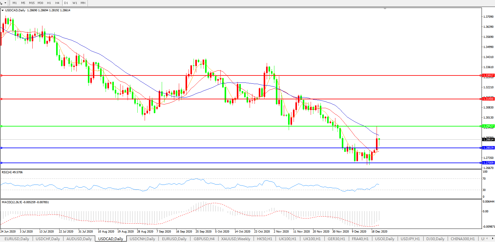 美元兑加元USDCAD 日线图: